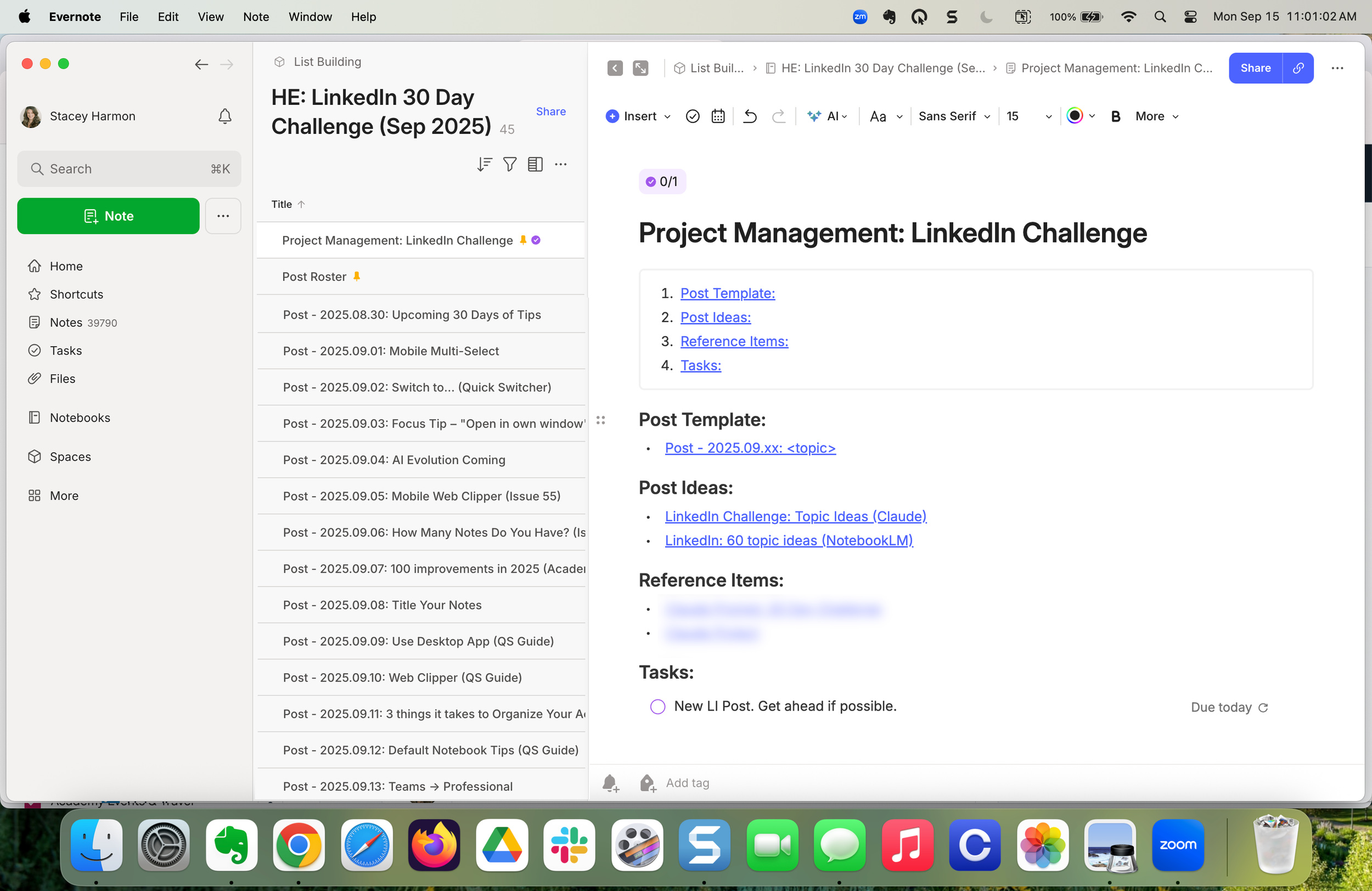 For example, I’m in the process of posting 30 days of Evernote tips on LinkedIn (do you follow me there?). I use just steps 1 & 2 to organize this project: