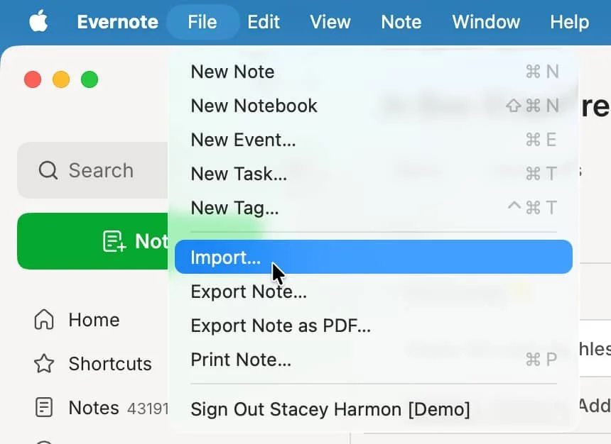 Evernote uses the word "import" in two different contexts, and this is where the confusion often starts.